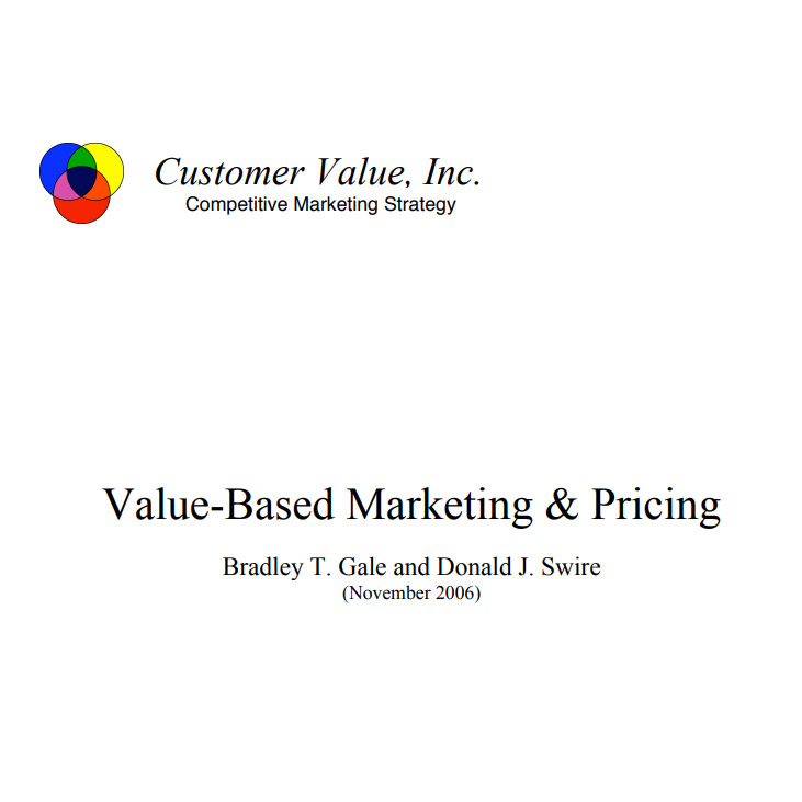 Value-Based Marketing and Pricing , by Bradley T. Gale and Donald Swire (Customer Value, Inc., November 2006) . This paper has sections on (1) Approaches to Customer Value Measurement, (2) Customer Value Accounting for Market-Value Pricing, and (3) Building a Market-Value Marketing Strategy System